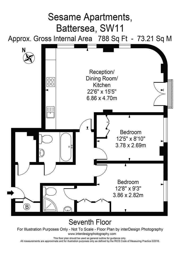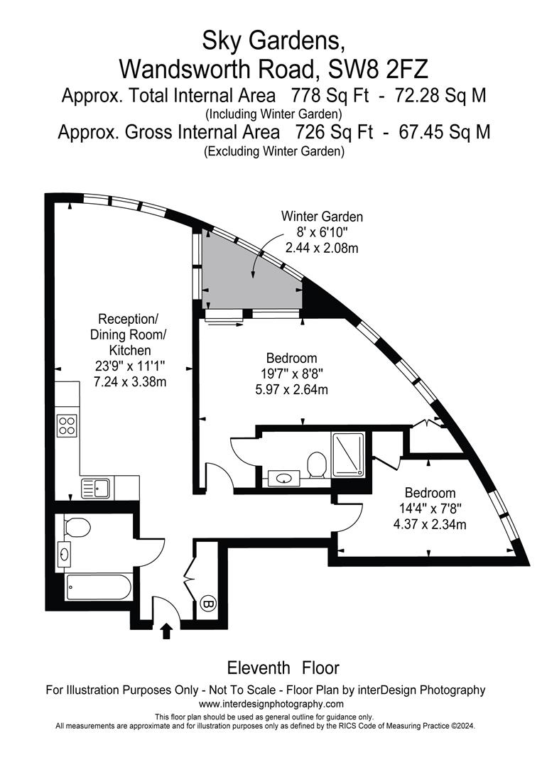 Located on the second floor and offering approximately 620 sq. ft. of internal living space, this south-facing apartment enjoys tree-lined views of King George’s Park. The property features floor-to-ceiling windows, a generously sized bedroom with a walk-in wardrobe, and a stylish contemporary bathroom suite.