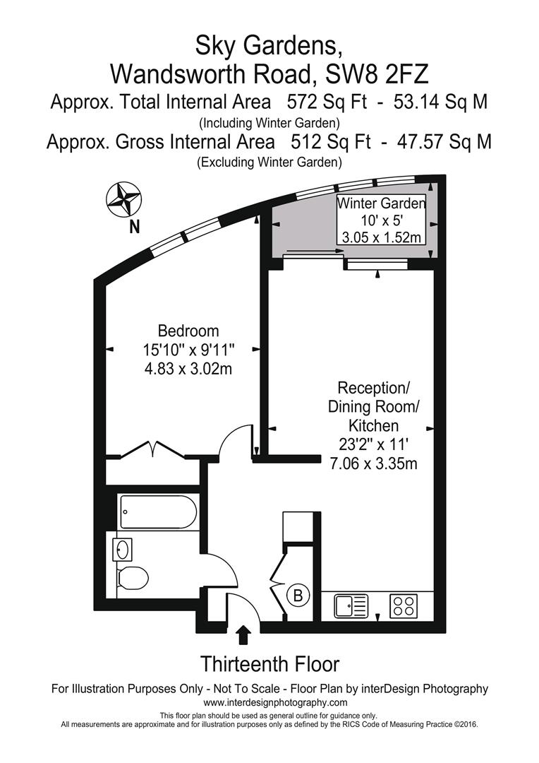 This stylish one-bedroom, one-bathroom apartment offers superb value and is priced for a quick sale. Located on the 13th floor of the sought-after Sky Gardens, Nine Elms, it spans 547 sq ft in size with a bright west-facing aspect.